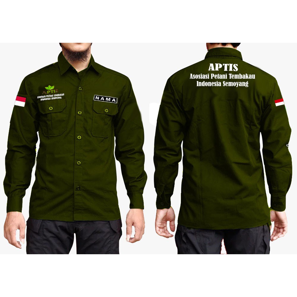 Kemeja Pria Lengan Panjang Custom Bordir Seragam Kantor Pdl Lapangan Baju Kerja Bahan Drill Shopee Indonesia