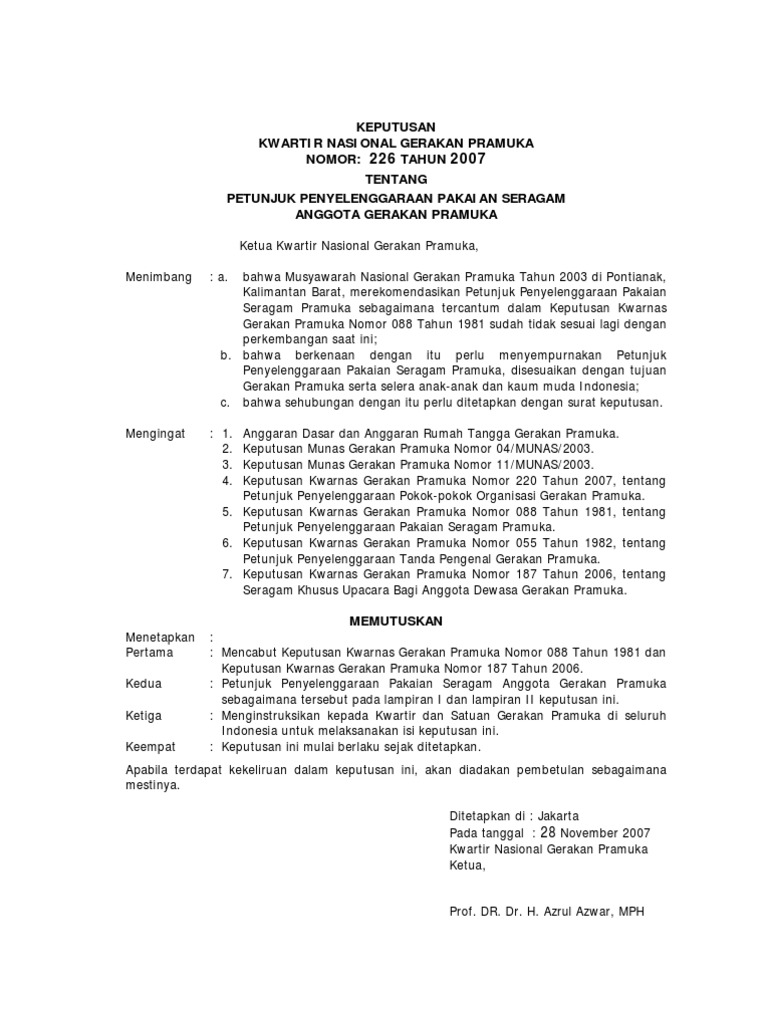 Pp Pakaian Seragam Anggota Gerakan Pramuka Keputusan Kwartir Nasional