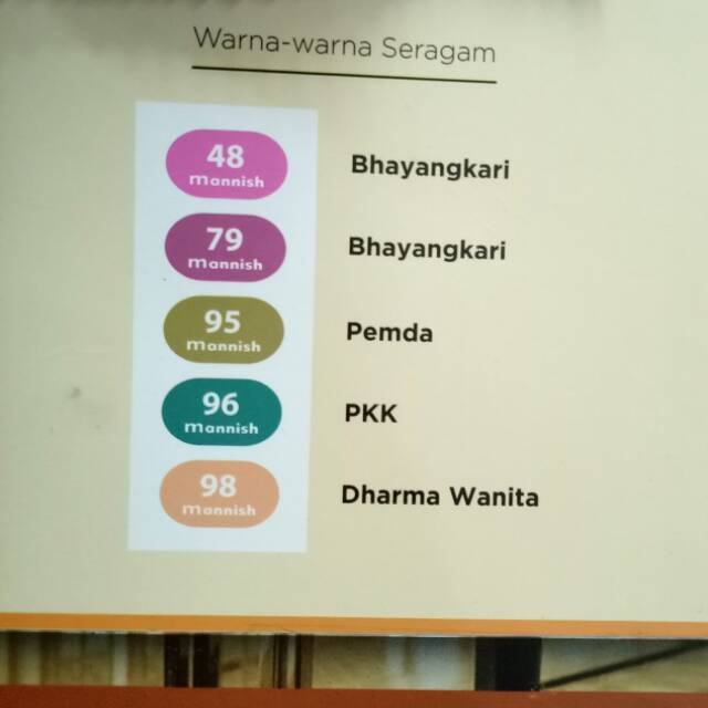 Nama Warna Seragam Dharma Wanita